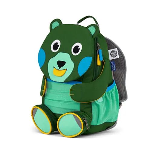 Superflot taske fra Affenzahn. Designet som en bjørn og i de sejeste grønne farver. Denne kreative ven til børnehavebørn skinner ikke kun med sine klare farver, men også med sin kapacitet på 8 liter. Anbefales til 3-5 årige og fra en højde på 90 cm.