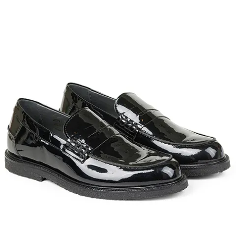 Flot og klassisk pennyloafer fra Angulus i laklæder. Skoen er fleksibel, og gummiydersålen er stødabsorberende med et godt fodfæste. Fås i halve størrelser. Her får du et par loafers perfekte til både hverdag og fest.