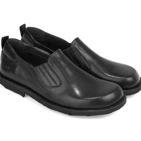 Helt igennem komfortabel sko fra Angulus. Overdelen er af glat skind med elastik i begge sider for løbende tilpasning til foden i løbet dagen. Skoen er en slip on-model med en trækfane på hælen, og åbningen er polstret på hælen. Modellen er bred og giver god plads til tæerne, og med skindfoer samt en dæksål beklædt med skind er der et godt fodklima. Den bløde, fleksible rågummiydersål er stødabsorberende med et godt fodfæste. Fås i halve størrelser.