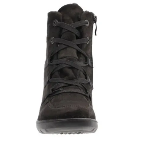 Dejlig Toronto ST GTX vinterstøvle med en overdel af tekstil i nubuck-look, indvendig foret med varmt foer og en åndbar og vandtæt Gore-Tex-membran, så fødderne holdes tørre og varme. Støvlen justeres med snørebånd og lukkes med en lynlås på indersiden af anklen. Med vidde H er der mere plads om forfoden. Den polstrede indersål kan tages ud, og den fleksible ydersål er stødabsorberende med et fint vejgreb. Fås i halve størrelser.