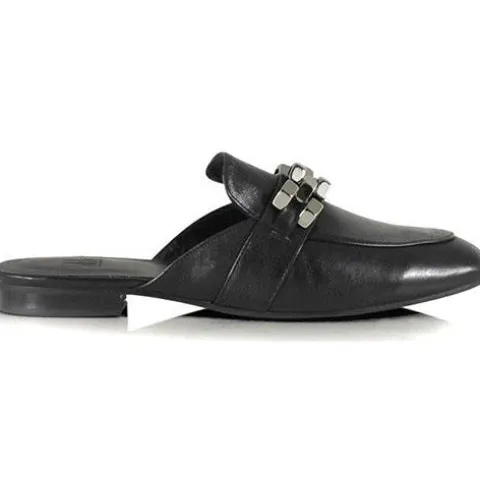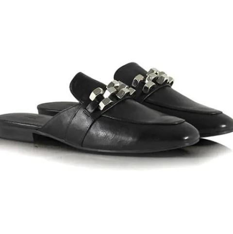 Sort slip-on fra Billi Bi i blødt skind med kædedetalje over forfod. Skindfoer og dæksål i skind.