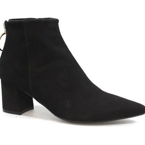 Flot enkell Billi Bi støvle med tilspidset snude og flot guldring på lynlåsen bagpå. Indvendig skindfoer og -dæksål.