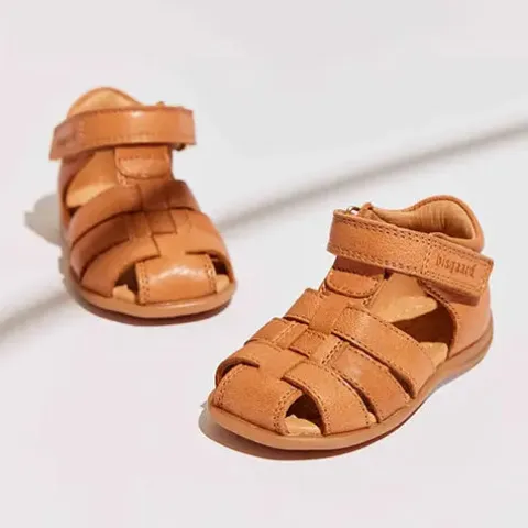 Superfin Carly sandal, en klassisk begyndersandal med lukket tå, der giver tæerne god beskyttelse. Sandalen er designet med en fast hælkappe, der sikrer den rette støtte og stabilitet omkring anklen. Håndlavet overdel af blødt, glat, kromfrit 100 % LWG-certificeret skind, foret med kromfrit skind. Sandalen lukkes med en justerbar velcrorem ved anklen. Den skindbeklædte indersål er komfortabel, og den fleksible gummiydersål er stødabsorberende med et godt fodfæste.