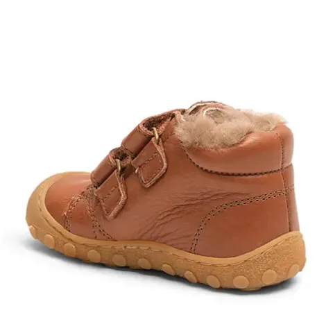Lækker Hale v Lamb prewalker vinterstøvle med en overdel af glat skind med snuden forstærket med gummi. Støvlen lukkes med to velcroremme, og åbningen er polstret for øget komfort og beskyttelse. Indvendig har støvlen et varmt uldfoer, og den udtagelige indersål er beklædt med uldfoer. Den fleksible gummiydersål er stødabsorberende med et godt fodfæste. Denne støvle er en barefoot-model, hvor den flade sål uden hældrop fremmer en naturlig gang og giver en forbedret ankelstabilitet samt balance.