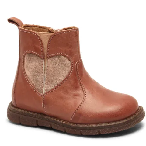 Feminin ankelstøvle med smukt hjerteformet design, der appellerer til alle sæsoner. Støvlen er håndlavet i Portugal af 100% bionedbrydeligt vegetabilsk garvet læder. Støvlen er designet med lynlås i siden, som gør det let at tage støvlerne af og på.