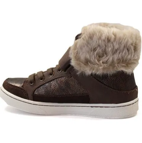 Super smart snørestøvle fra Bullboxer. Støvlen har en regulerbar velcrorem, så støvlen sidder godt fast på foden. Fine detaljer med metaleffekt og varm pelskrave øverst på støvlen. Modellen har bløde og fleksible gummisåler.