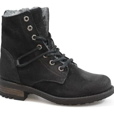 Varm støvle fra Bullboxer med både snørebånd og lynlås. Pelsfoer holder fødderne varme.