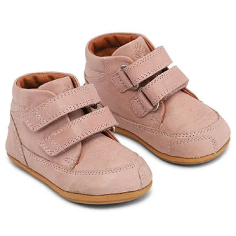 Skoen lukkes med to velcroremme over vristen, og velcrolukningen gør skoen nem at åbne helt op, så den er nem at få af og på. Samtidig kan velcrobåndene justeres og kortes af, så skoen kan tilpasses barnets fod perfekt og give optimal komfort og støtte. Åbningen er polstret for øget komfort, imens den brede pasform giver tæerne bevægelsesfrihed.