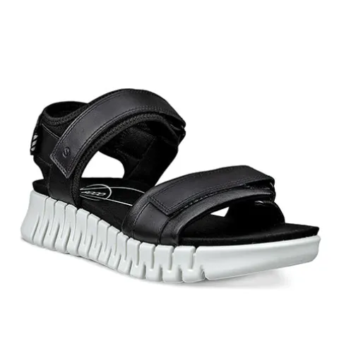 Lækker GRUUV Sol W sandal med en overdel af glat skind foret med tekstil. En unik egenskab ved denne behagelige sandal er den innovative ydersål, som er fleksibel og bøjelig to veje, så din fod kan bevæge sig frit uanset underlaget. Sandalen justeres og lukkes med tre velcroremme (forfod, vrist og hæl), en refleksdetalje for enden af hælremmen øger synligheden. Den komfortable fodseng er beklædt med behageligt mikrofiber, og ECCO FLUIDFORM™-teknologi sørger for en naturlig anatomisk støttende pasform, som følger formen på din fod, så du får komfort hele dagen. Den dynamiske, ultralette og stødabsorberende PHORENE™-ydersål, som kan flekse to veje, giver dig et godt fodfæste, returenergi og fuld udnyttelse af din fods bevægelser i enhver vinkel.