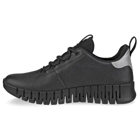 ECCO GRUUV sneakeren er specialudviklet til at give dig en behagelig gang og støtte i hvert eneste skridt og er designet til at være en landtidsholdbar sko med førsteklasses kvalitet til at opfylde dine behov på farten. En unik egenskab ved denne behagelige sneaker er den innovative gummisål, som er fleksibel og bøjelig to veje, så din fod kan bevæge sig frit uanset underlaget. Overdelen er af blødt nappalæder, forarbejdet med ECCO DriTan™-metoden, som bruger mindre vand og kemikalier, end der normalt bruges i lædergarvningsprocessen. Refleksdetaljer på hælen. Skoen lukkes med et elastisk snørebånd, som sidder i udvendige snørehuller til hurtig justering på farten, og trækfaner på hæl og pløs gør det nemt at træde i skoen. Den udtagelige Dual Fit-indlægssål i komfortskum giver mulighed for to pasformer, hvor du kan tilpasse bredden individuelt. ECCO FLUIDFORM™ giver en naturlig anatomisk støttende pasform og fornemmelse, imens den dynamiske og stødabsorberende gummisål, som kan flekse to veje, giver dig et godt fodfæste og fuld udnyttelse af din fods bevægelser i enhver vinkel.