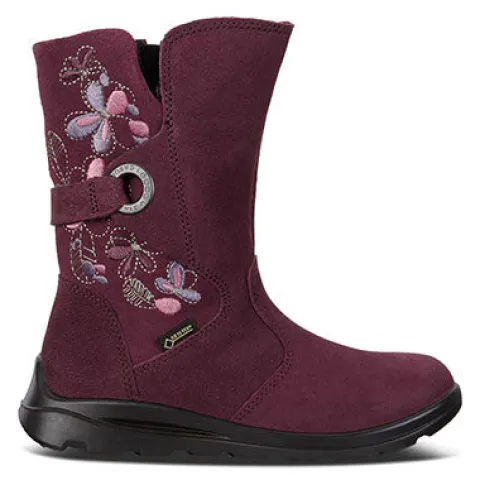 ECCO støvle med det flotteste broderi på skaftet. 100% vandtæt Goretex®-membrran og indvendig lynlås, varm foring og en udtagelig indlægssål i filt. Bløde og fleksible såler.