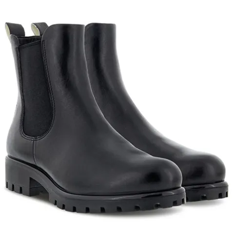 Super komfortabel chelsea støvle fra ECCO. Støvlen har elastik i siderne samt en strop bagpå, så den er let at tage på. Anatomisk udformet dæksål i skind samt et blødt tekstilfoer. Let og fleksibel PU-sål.