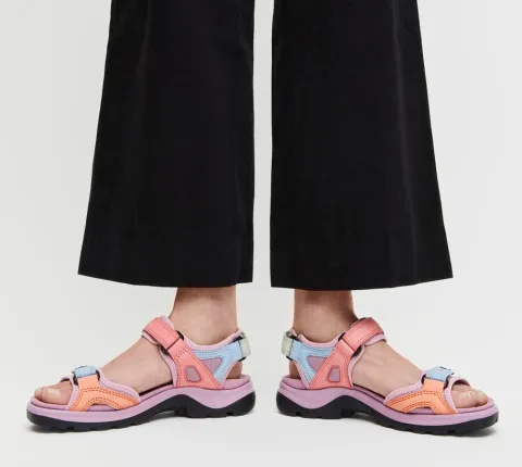 Smart Offroad sandal til outdoor aktiviteter. Overdelen er af kvalitetsskind og åndbart tekstil, udstyret med neoprenfoer. Du får en blød og behagelig pasform med denne sandal, som har en siderem på ydersiden samt justeres og lukkes med tre velcroremme (forfod, vrist og hæl) med gummi på enden, så de er nemme at få fat i. Den formstøbte EVA-fodseng med blød mikrofiber giver god stødabsorbering og stabilitet, imens ECCO RECEPTOR®-teknologien sikrer optimal stabilitet og dynamisk støtte, fra du sætter foden i jorden, til dine tæer slipper underlaget. Den lette sål sikrer stødabsorbering og fleksibilitet hele dagen ved hjælp af den innovative ECCO FLUIDFORM™ Direct Comfort-teknologi, og den slidstærke gummiydersål er stødabsorberende med et godt fodfæste i varieret terræn.
