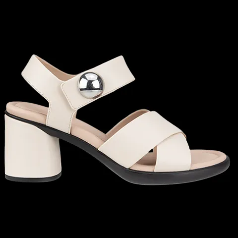 Lækker Sculpted LX 55 sandal med overdel, foer og indersål af glat skind. Sandalen lukkes med en velcrorem dekoreret med en rund, sølvfarvet knap. Indersålen er polstret og komfortabel. Den 8 cm høje blokhæl føles lavere, da sandalen har en 1 cm høj plateausål under forfoden. Virkelig lækker sandal med komforten i højsædet – måske din nye favorit!