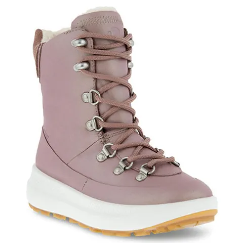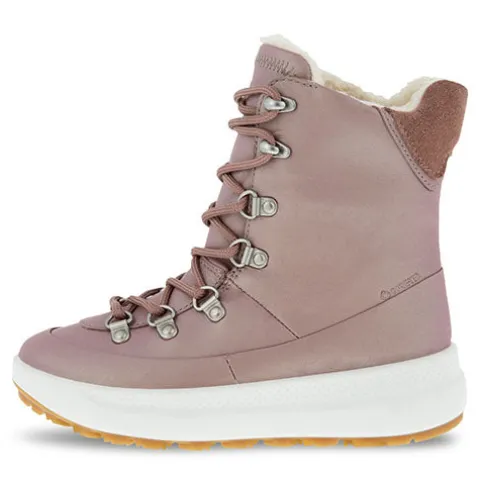 ECCO SOLICE K, der er lavet af glat full-grain læder med metallisk glans, er en vandtæt støvle med varmt foer, der er lige så praktisk til vintermånederne, som den er stilfuld. Den er konstrueret på en smallere læst beregnet til pigemodeller og er en snøremodel med lynlås i siden, så den er nem at tage af og på, mens metalhægterne komplementerer det elegante design.