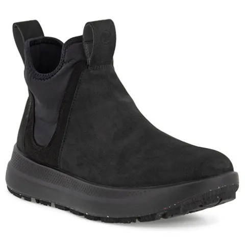 I en sporty, outdoor-inspireret udgave af den ikoniske Chelsea støvle giver ECCO SOLICE dig eksklusiv, feminin stil vinteren igennem, også i sne og frost. Med moderne teknologier og ECCO nubucklæder fra vores egne garverier er denne opdaterede version af Chelsea støvlen blevet tilpasset til SOLICE’ geometriske univers. Et kraftigt mønster i gummiydersålen med dele i genanvendt gummi kan klare sne og is, mens en GORE-TEX membran giver 100 % beskyttelse i vådt og blæsende vejr.