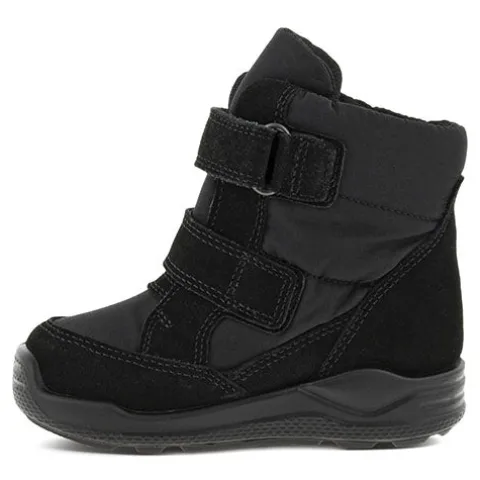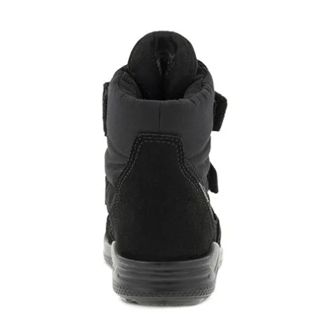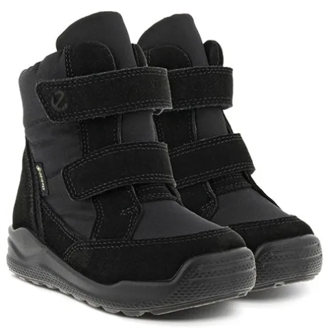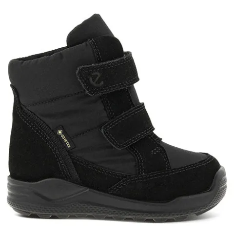 Superdejlig ECCO Urban Mini I High 2S GTX støvle perfekt til vintervejr. Overdelen er af ruskind og tekstil med en polstret åbning for øget komfort og beskyttelse, og indvendig har støvlen et varmt foer samt en åndbar og vandtæt GORE-TEX®-membran, så fødderne holdes varme og tørre. Støvlen lukkes med to justerbare velcroremme, og den udtagelige indersål er belagt med aluminium, som isolerer mod kulde. Det unikke mønster i den stødabsorberende ydersål giver forbedret fodfæste, imens ECCO FLUIDFORM™ Direct Comfort-teknologien sikrer en fleksibel og slidstærk sål, som giver små fødder i voksealderen den nødvendige støtte og komfort.