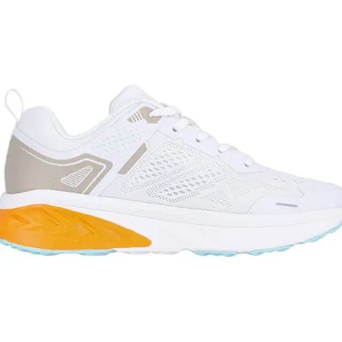 Whitech W sneakers med snører. Overdelen er af tekstil med syntetdetaljer, blandt andet en sandfarvet detalje på hælen. Åbningen er polstret for øget komfort og har en trækfane på hælen. Du kan tage indersålen ud og lægge din egen sål i skoen. Orange detalje på mellemsålen og turkis gummi under ydersålen for ekstra godt vejgreb.