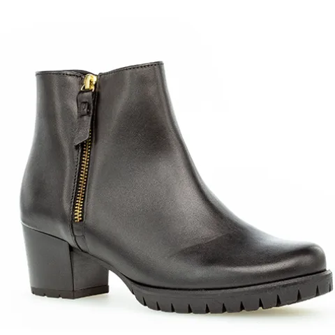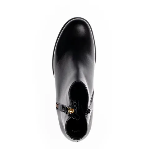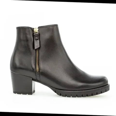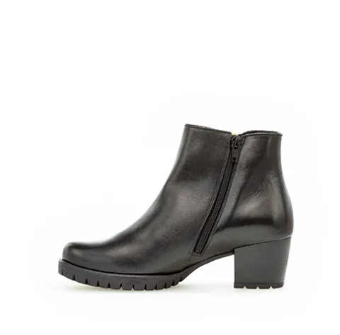 Sort støvle fra Gabor med lynlås indvendig og udvendig lynlås til at give ekstra plads. Støvlen har en stabil hæl på 3,5 cm.