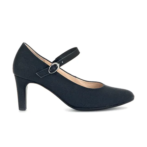 Flot damesko med hæl og flot glittereffekt fra Gabor. Skoen lukkes med rem med spænde over vrist, og remmen er fastgjort til skoen med elastik i begge ender. Skoen er fleksibel og komfortabel.