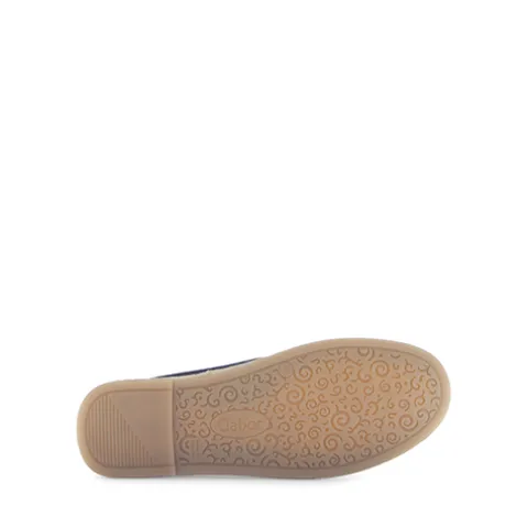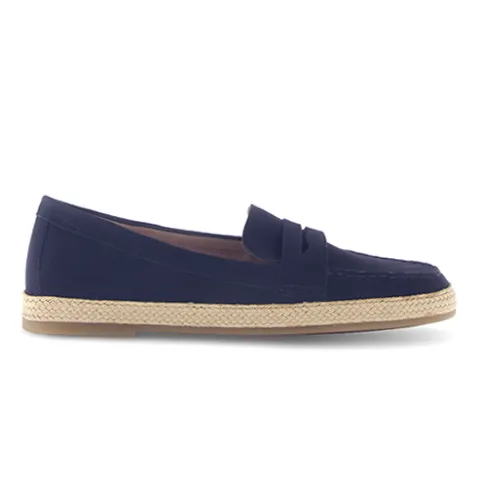Komfortabel pennyloafer med en overdel af blødt ruskind med en kant af flet. Den skindbeklædte indersål er polstret og komfortabel, og den fleksible gummiydersål er stødabsorberende med et godt fodfæste. Fås i halve størrelser.