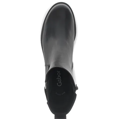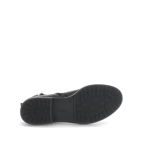 Flot støvle med en overdel af glat skind med et elastikpanel på ydersiden, dekoreret med en rem om anklen. Støvlen lukkes med en lynlås på indersiden af anklen og har en trækfane bagpå. Den udtagelige indersål er komfortabel og støddæmpende. Den fleksible ydersål er stødabsorberende med et fint fodfæste. Fås i halve størrelser.