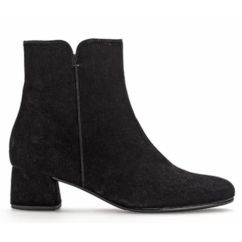 Flot støvle i et klassisk design. Overdelen er af ruskind, foret med tekstil. Lukkes med en lynlås på indersiden. Den 5 cm høje blokhæl giver et ekstrafeminint look. Fås i halve størrelser.