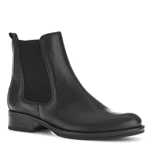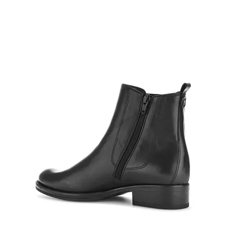 Fin ankelstøvle af glat skind. Lukkes med lynlås på indersiden af anklen, og et elastikpanel på ydersiden samt en trækfane bagpå gør det nemt at træde i støvlen. Støvlen har en lille hæl, der understreger det feminine look. Indersålen kan tages ud, og ydersålen giver et godt fodfæste.