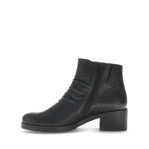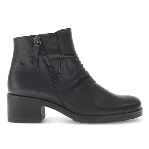 Flot støvle med en overdel af glat skind, som er smart rynket på fronten og dekoreret med en lynlås på ydersiden af anklen. Støvlen lukkes med en lynlås på indersiden af anklen. Med vidde G er der mere plads om forfoden. Den udtagelige indersål er komfortabel og støddæmpende. Den 4 cm høje blokhæl giver et flot, feminint look, imens gummiydersålen forbedrer fodfæstet. Fås i halve størrelser.