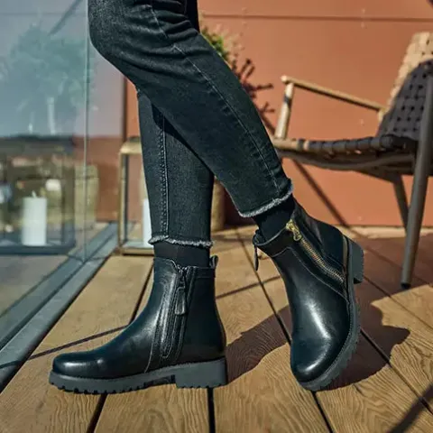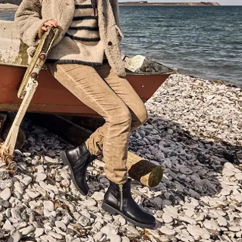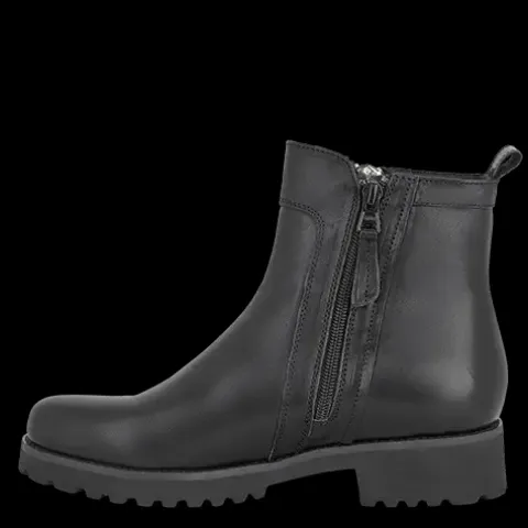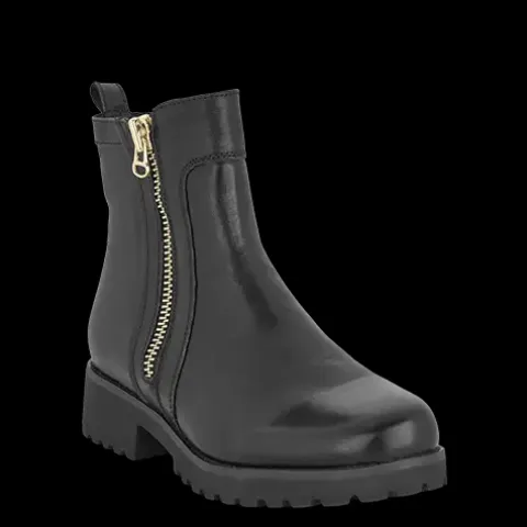 Lækker Strike Sigi ankelstøvle med en overdel af vegetabilsk garvet glat skind med en gylden lynlås på ydersiden af anklen og en sort lynlås på indersiden samt en trækfane bagpå. Indvendig har støvlen et fugttransporterende Soft Tex-foer, der lader dine fødder ånde og holder dem tørre hele dagen. Den udtagelige 3 mm EnergySole™-indersål med hælkop aktiverer de små muskler i dine fødder, giver optimal stødabsorbering og mindsker træthed. Modellen er skabt på den rummeligt H-læst, som giver mere plads om forfoden. Den fleksible og kraftige ydersål har et godt mønster og er stødabsorberende med et godt fodfæste.