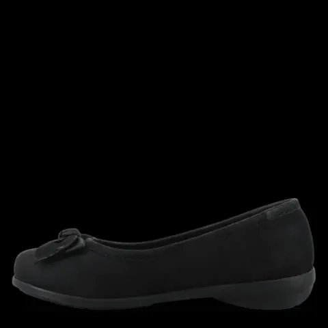 Dejlig Vela Viola ballerinasko med en overdel af blød gedenubuck, dekoreret med en pyntesløjfe på forfoden og foret med Soft Tex-foer. Med vidde H er der plads til den bredere fod, og den udtagelige 4 mm EnergySole™ Memory-indersål med hælkop er polstret og komfortabel. Skoen har et lille løft ved hælen, der komplementerer den naturlige fodform, og den fleksible gummiydersål er stødabsorberende og giver et fint fodfæste. Perfekt til hverdagsbrug eller en aften ude.