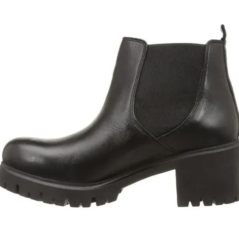 Skøn chelsea læder støvle med bred elastik i siderne. Støvlen har grove såler med lille plateau.