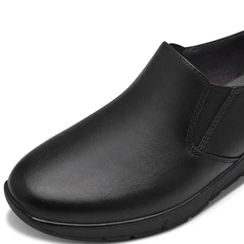 Dejlig Soft Line sko i et enkelt og feminint look. Overdelen er af syntet i læderlook med en åndbar Jana tex-membran, som holder fødderne tørre. Skoen er en slip on-model som en hyttesko, og elastikkiler ved åbningen sørger for, at skoen tilpasser sig foden i løbet af dagen. Med vidde H er der mere plads om forfod og tæer. Indvendig har skoen et blødt tekstilfoer, og indersålen er blød og polstret. Den fleksible gummiydersål er stødabsorberende med et godt vejgreb, og hælhøjden på 4 cm giver sammen med en plateauhøjde på 1,5 cm et diskret og behageligt løft. 100 % vegansk.
