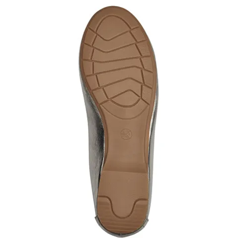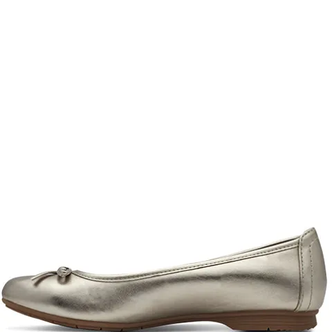 Smart og komfortabel Soft Line ballerinasko med en overdel af imiteret læder, dekoreret med en sløjfe på forfoden. Soft Line-indersålen er blød, og med vidde H er der plads til den bredere fod. Den fleksible gummiydersål er stødabsorberende og giver et fint fodfæste. Er 100 % vegansk.