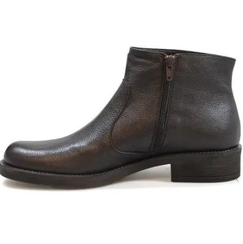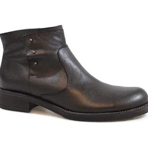 Linea støvle i lækkert brun skind. Støvlen er pyntet med tre nitter og har lynlås på indvendig side af skaftet. Støvlen er foret med skind og dæksålen er også i skind. En flot og komfortabel støvle.