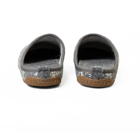 Lækker hjemmesko med en overdel af uldfilt (100 % uld), foret med tekstil (90 % uld/10 % polyester). Overdelen er dekoreret med broderede snefnug. Den udtagelige indersål er stødabsorberende, polstret og komfortabel, og den superfleksible gummiydersål er vandtæt med et fint fodfæste.