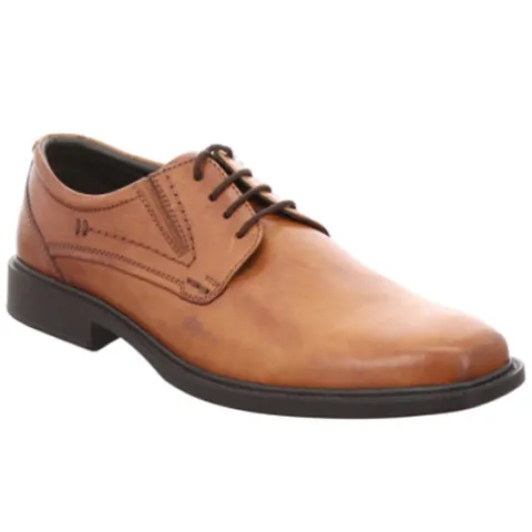 Flot herresko med en overdel af glat skind. Skoen lukkes med snørebånd og har små elastikkiler ved siden af snørebåndet for forbedret tilpasning til foden i løbet af dagen. Med ekstra vidde er der plads til den bredere fod. Indvendig har skoen et behageligt skindfoer, som sikrer et godt fodklima. Ydersålen er fleksibel med et fint fodfæste.
