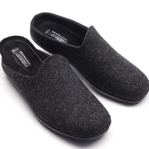 Lun og komfortabel Man at home slippers-hjemmesko med en overdel af filt. Dæksålen er blød og foeret, og ydersålen er fleksibel.