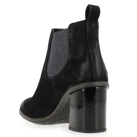 Smart støvle fra Mjus med elastik i siderne. Støvlen har en behagelig blokhæl og slid på hæl og tå. Indvendig er støvlen foret med skind og dæksål i skind.