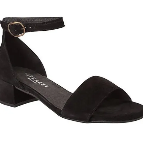 Smuk sandal fra Pavement med behagelig hælhøjde, ankelrem og et dekorativt sølvspænde. Indvendig er der skindfor og dæksål i skind.