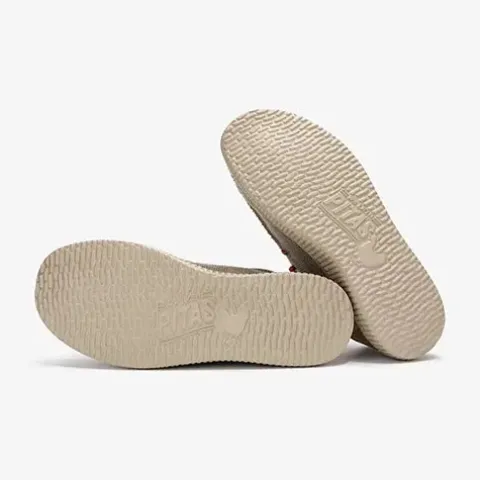 Lækker WP150 Steve sko med en åndbar overdel af 10 % splitlæder og 90 % lærred (55 % polyester/45 % bomuld) med en moc toe-syning. Skoen er en slip on-model med en elastisk snøre, som nemt kan justeres, og i skoæsken medfølger et par elastiksnører i samme farve som skoen. Åbningen er polstret for øget komfort, og indvendig har skoen et blødt og smart bomuldsfoer. Den ekstrapolstrede og udtagelige EVA-indersål er beklædt med kork og giver høj komfort hele dagen. Den fleksible ydersål er stødabsorberende med et fint fodfæste. Her får du en superlet og komfortabel sko, som samtidig er et blikfang med sit flotte og afslappede design. Her får du en lækker Wallabi-model, der er supernem at tage af og på, og som holder dig cool hele sæsonen.