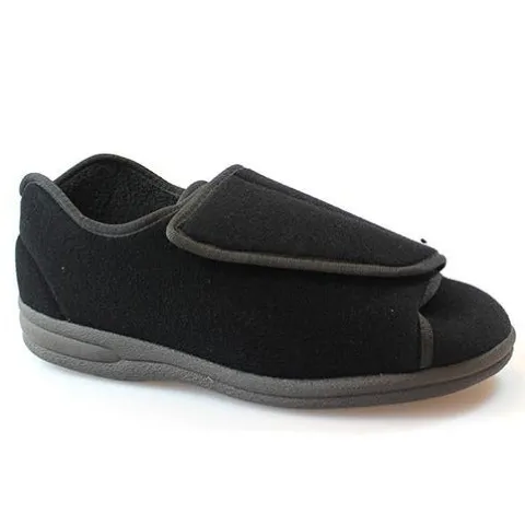 Hjemmesko til både damer og herre. Modellen har en bred velcro så god justeringsmulighed til hævede fødder. Kan vaskes ved 30%.