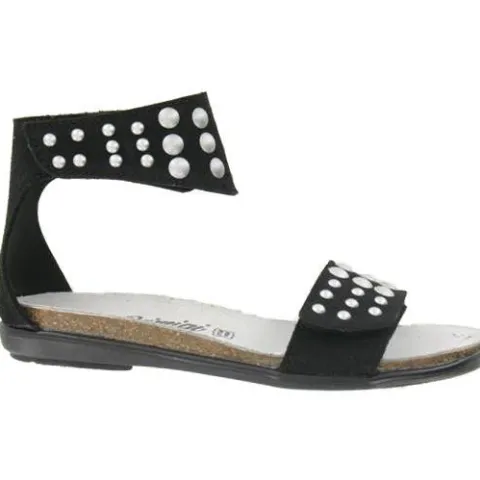 Fin sommersandal fra Primigi, flot pyntet med nitter. Sandalen har justerbar velcrorem ved anklen og hen over foden. Bløde og fleksible såler.