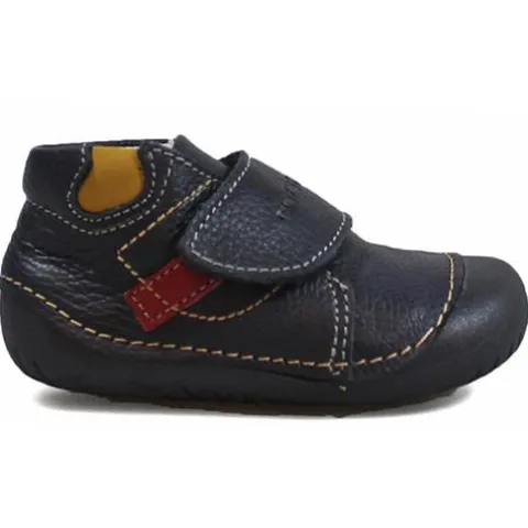 Super fin babysko fra Primigi til de første skridt. Skoen har en blød, men fast hælkappe. Bløde og fleksible gummisåler. Skoen er med en bred velcrorem. Velegnet som barnets første sko.