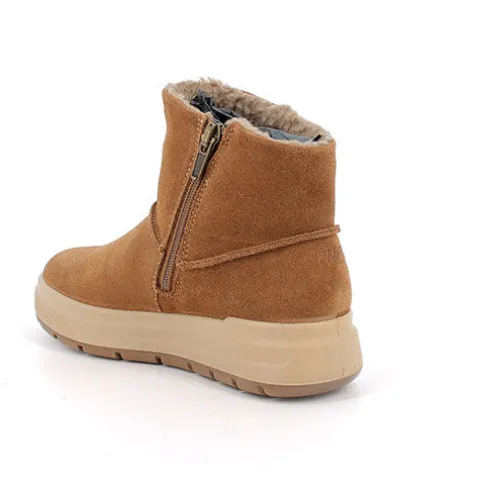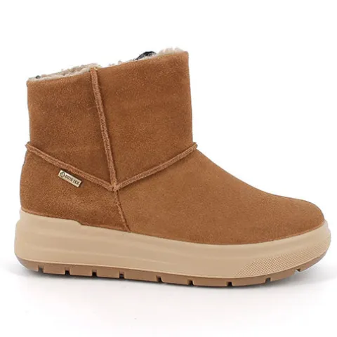 Lækker vinterstøvle med en overdel af ruskind dekoreret med smarte syninger. Støvlen lukkes med en lynlås på indersiden af anklen. Indvendig har støvlen et varmt foer, og sammen med en åndbar og 100 % vandtæt Gore-Tex-membran holdes fødderne varme og tørre i vintervejret. Indersålen kan tages ud, og den fleksible ydersål er stødabsorberende med et godt fodfæste.