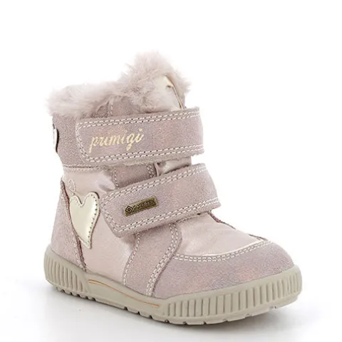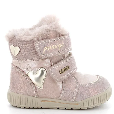 Robust og vandtæt vinterstøvle med en overdel af tekstil og lamineret ruskind med glimmereffekt dekoreret med et hjerte på ydersiden af anklen. Støvlen lukkes med to velcroremme, og pløsen, åbningen og indersiden af skaftet er beklædt med et blødt plysfoer. Indvendig har støvlen et varmt foer af GORE-TEX-uld, og sammen med en åndbar og 100 % vandtæt GORE-TEX-membran holdes fødderne varme og tørre i et ideelt fodklima. Den udtagelige indersål beklædt med uld er varm, åndbar og anatomisk, og den fleksible ydersål er stødabsorberende med et godt fodfæste.