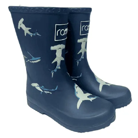 Dejlig Sharks gummistøvle med en vandtæt overdel af gummi med et flot print. Gummistøvlen er forstærket om åbningen, imens en lang refleksstribe bagpå øger synligheden. Indvendig har gummistøvlen et blødt tekstilfoer, og indersålen kan tages ud. Den fleksible og stødabsorberende ydersåls mønster leder vandet væk og giver et forbedret vejgreb.