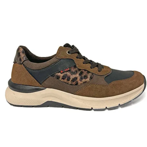 Lækker sko med en overdel af syntet i et flot farvemiks af leopardprint og brune nuancer. Skoen justeres med snørebånd og lukkes med en lynlås på indersiden af anklen, og åbningen er polstret for øget komfort. Skoen har en vandafvisende Relife-Tex-membran, så fødderne holdes behagelige. Den bløde memory foam-indersål er udstyret med Relifes SoftReflex-System, som via massageelementer i hælen aktiverer dine reflekszoner og med en stødabsorberende cylinder beskytter rygraden mod stød og dermed hjælper med at afslappe din krop. Den godt mønstrede gummiydersål er stødabsorberende med et godt fodfæste.