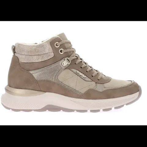 Lækker ankelstøvle med en overdel af syntet og tekstil med en polstret krave. Støvlen justeres med snørebånd og lukkes med en lynlås på indersiden af anklen, og en trækfane bagpå gør det nemt at træde i støvlen. Indvendig har støvlen let, lunt foer, og sammen med en vandafvisende Relife-Tex-membran holdes fødderne behagelige. Den bløde indersål er udstyret med Relifes SoftReflex-System, som via massageelementer i hælen aktiverer dine reflekszoner og med en stødabsorberende cylinder beskytter rygraden mod stød og dermed hjælper med at afslappe din krop. Den godt mønstrede gummiydersål er stødabsorberende med et godt fodfæste.