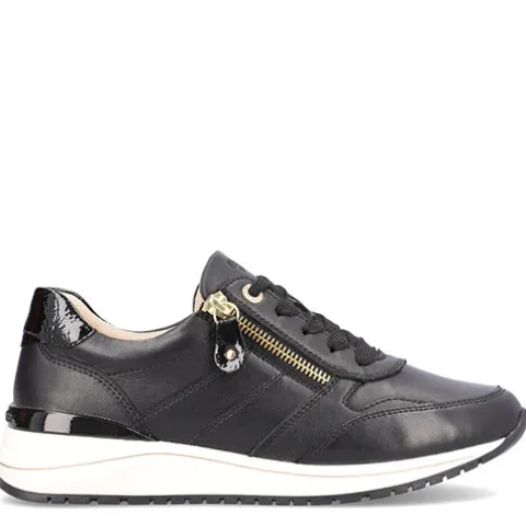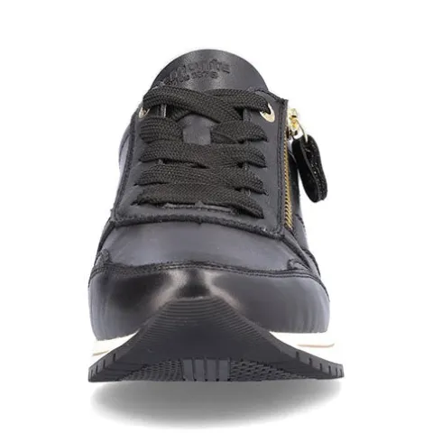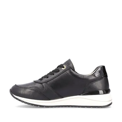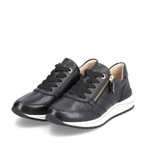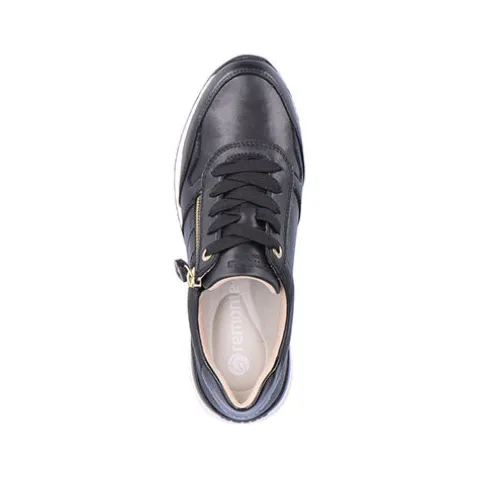 Her har du en moderne, let og lækker sneakers fra Remonte med lynlås og snøre. Den funktionelle lynlås, som sidder på ydersiden, gør det nemt at tage skoen på og af. Skoen er stødabsorberende og fleksibel, og den udtagelige sål er blød, så du er sikret god støtte og komfort.